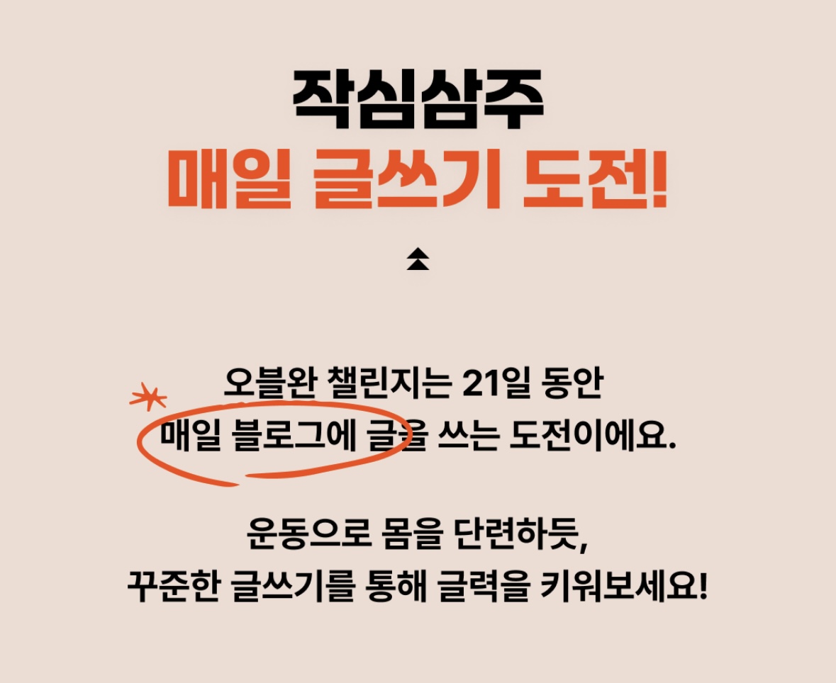 오늘 블로그 완료! 21일 동안 매일 블로그에 글 쓰고 글력을 키워보세요.