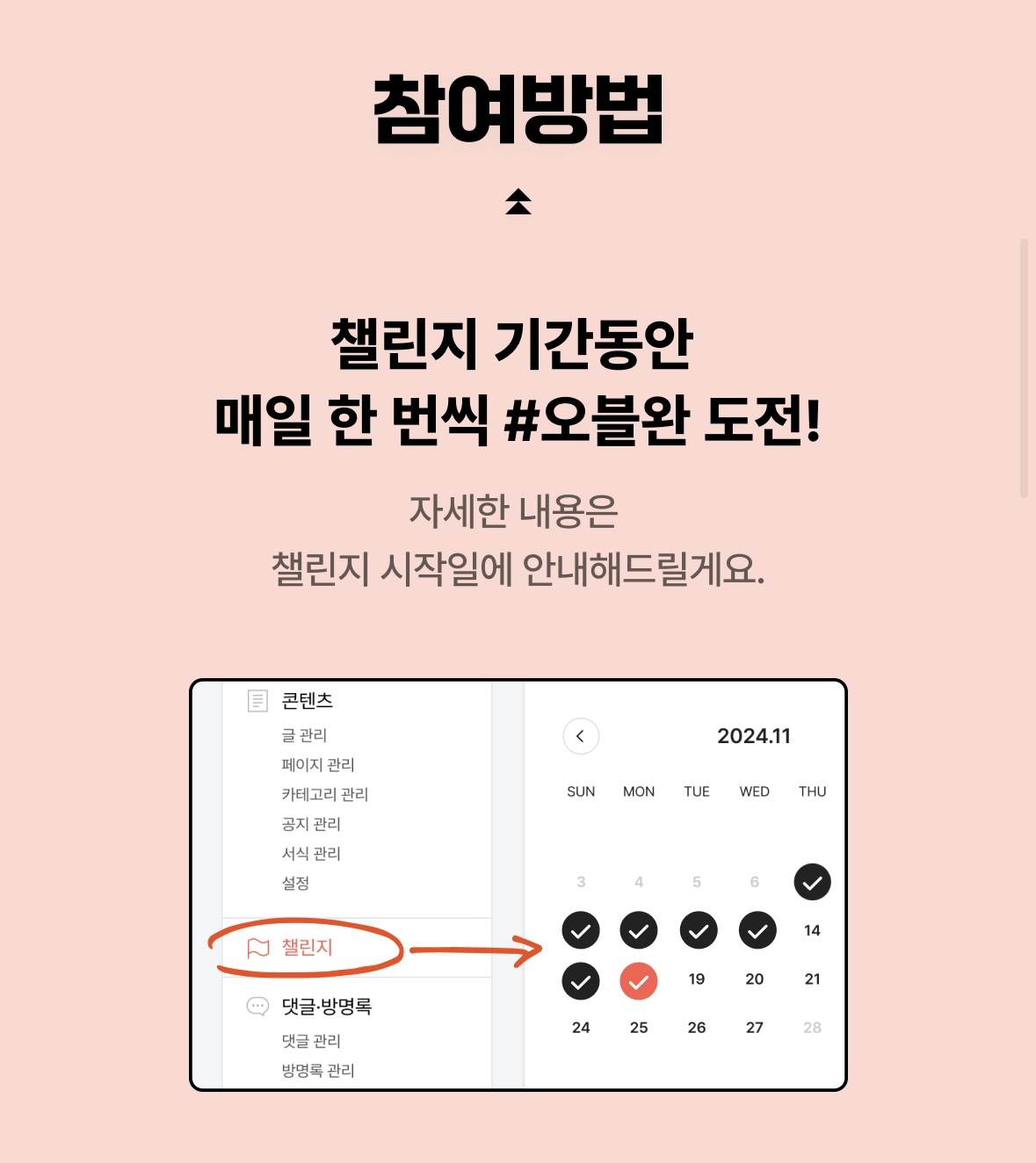 참여 방법은 챌린지 시작일인 11/7일에 자세히 나올 것 같습니다.