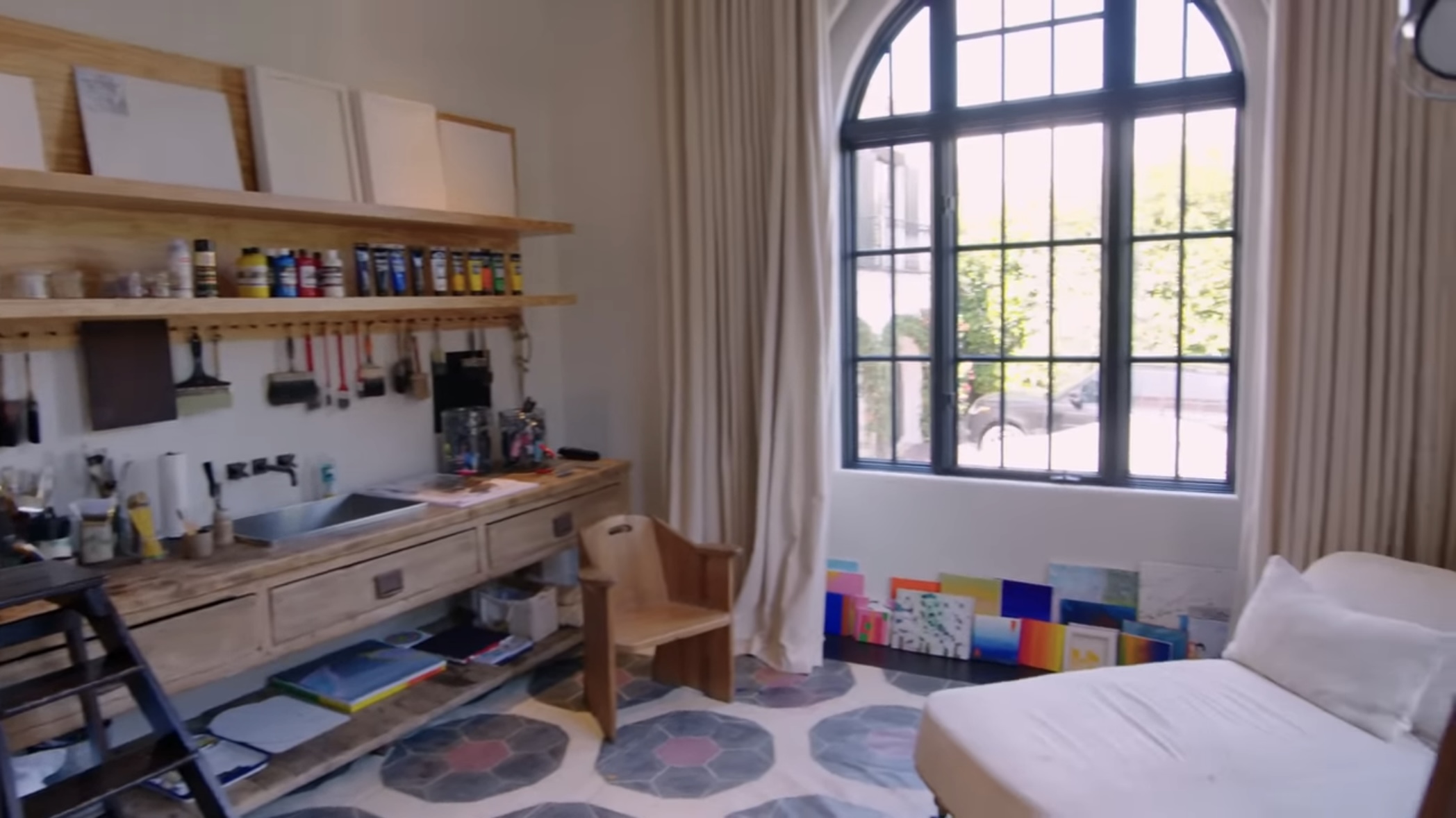 영화관으로 사용되던 방을 켄달 제너는 자신만의 예술 작업실로 변신시켰습니다.