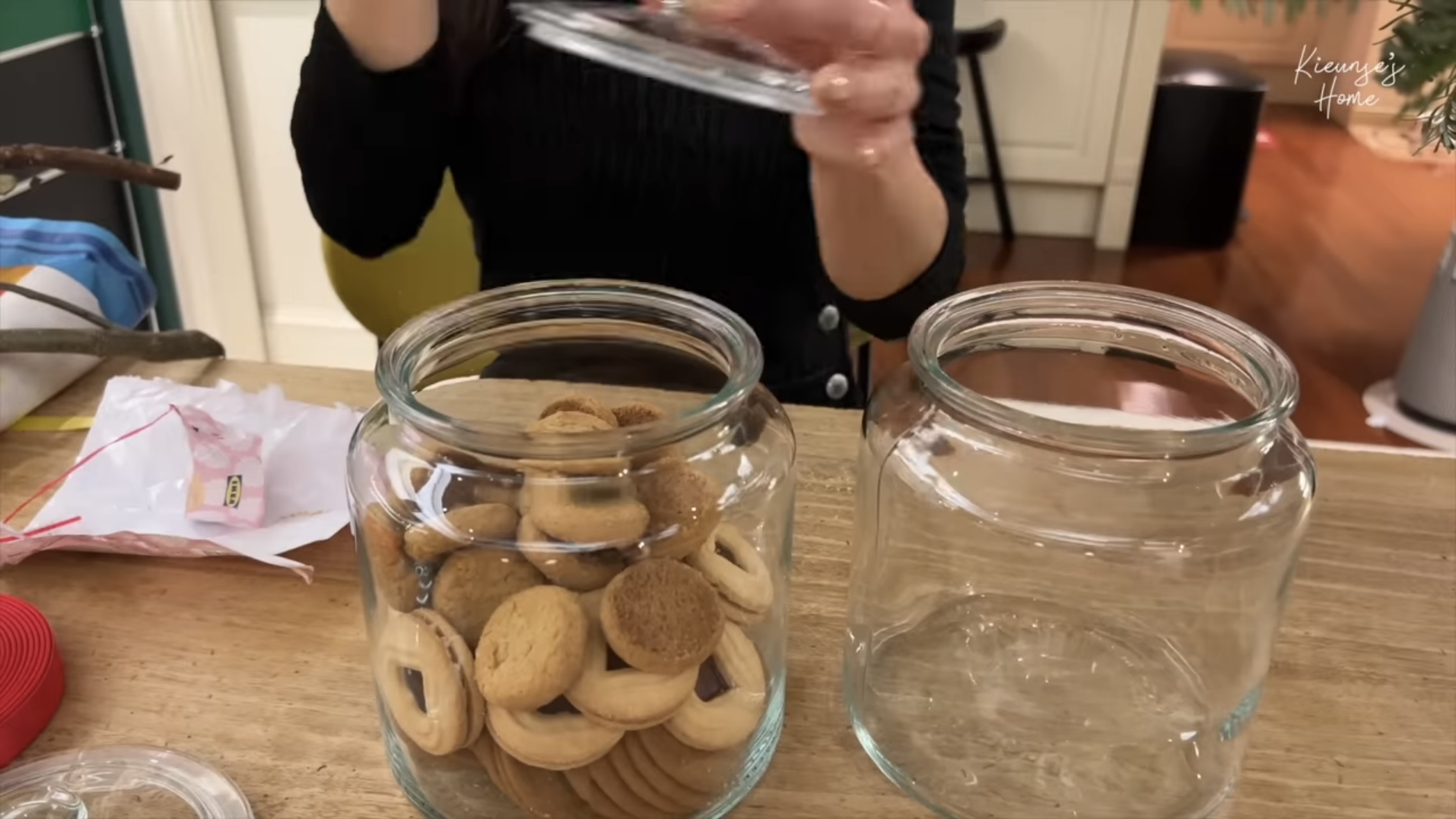 이케아에서 구입한 유리병에 과자나 간단한 소품을 담아 테이블 장식으로 활용하세요.