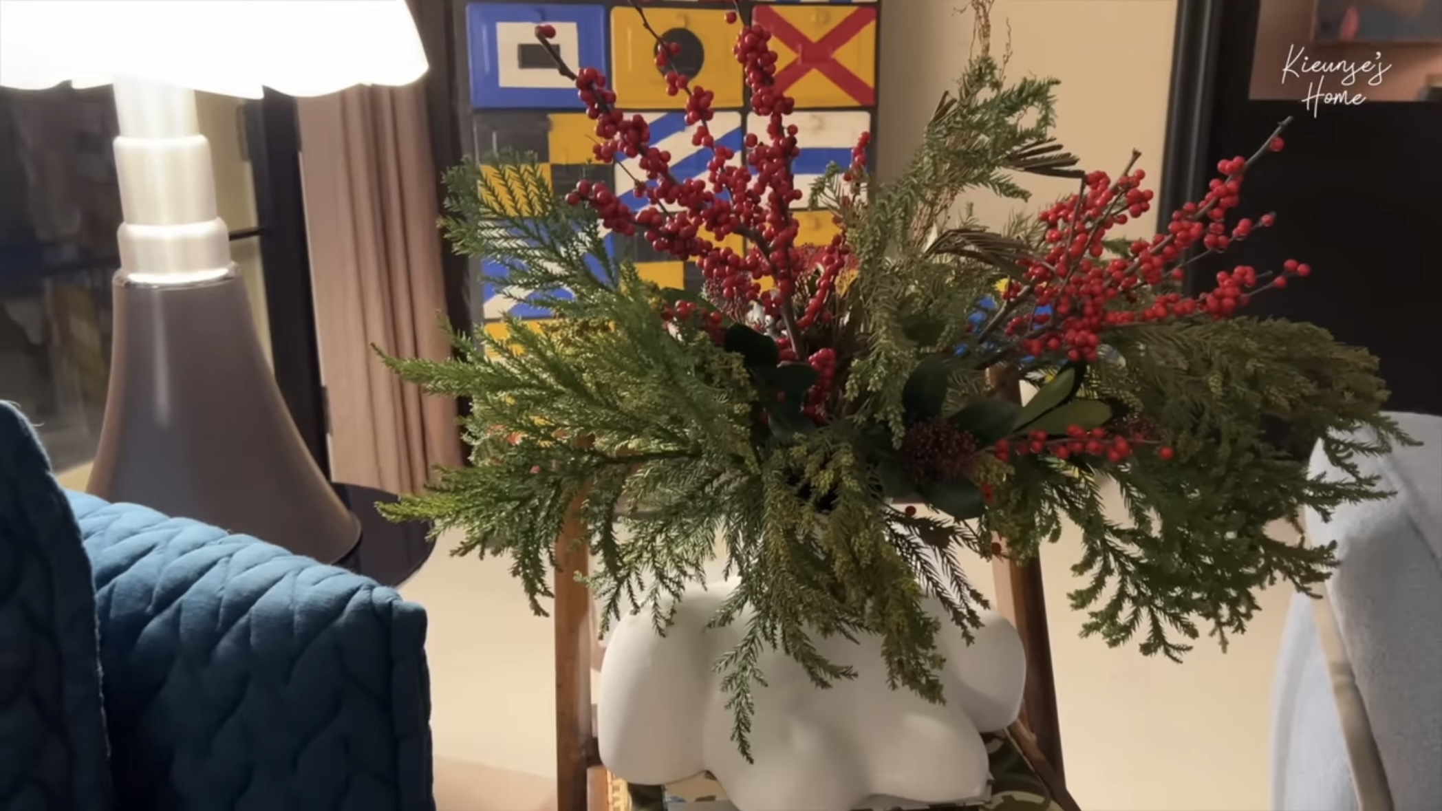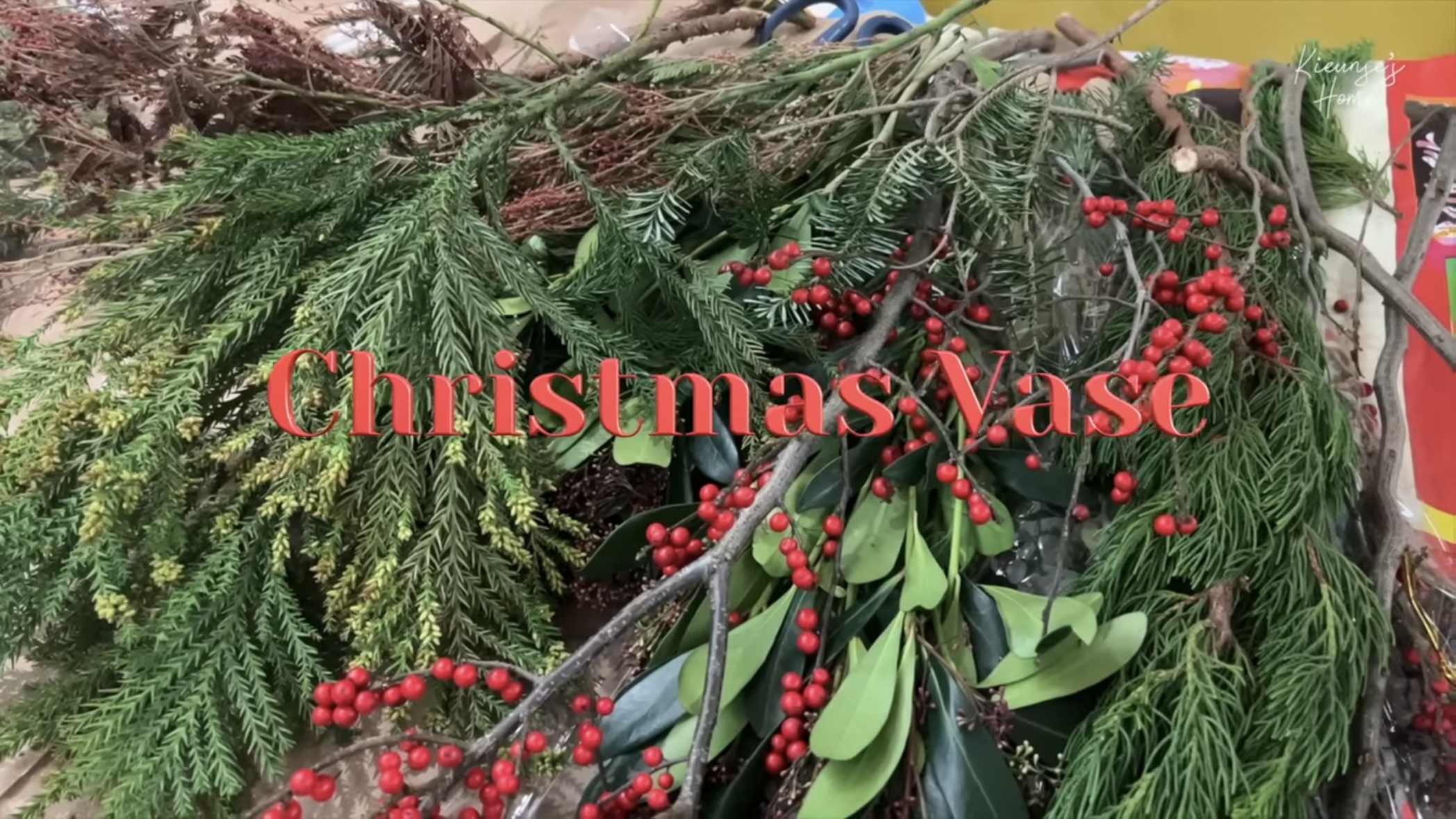 - 꽃시장에서 사온 크리스마스 생화 소재를 풍성하게 꽂아주는 것만으로도 집 안 분위기가 살아납니다.