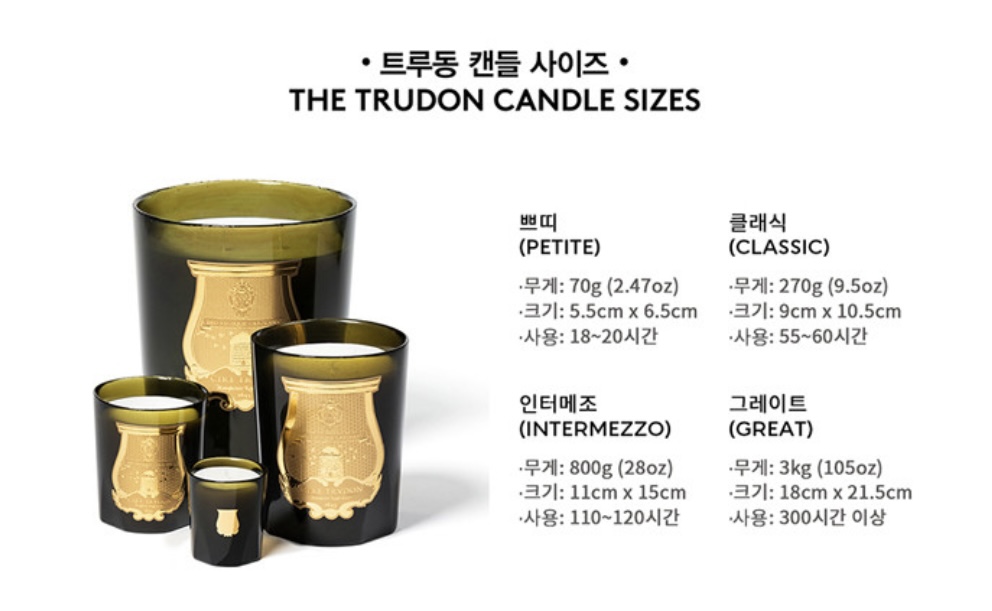PD님이 사이즈에 깜짝 놀라신 트루동의 '그레이트' 사이즈 캔들은 넓은 공간에 향이 곳곳으로 퍼지게 하는데 유용합니다.