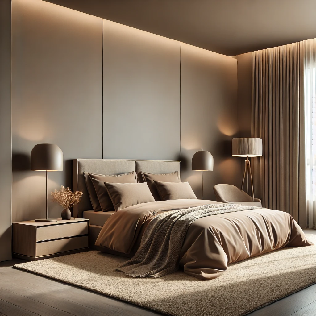 침실은 하루의 피로를 푸는 공간인 만큼 차분하고 안정감 있는 색상이 중요합니다.